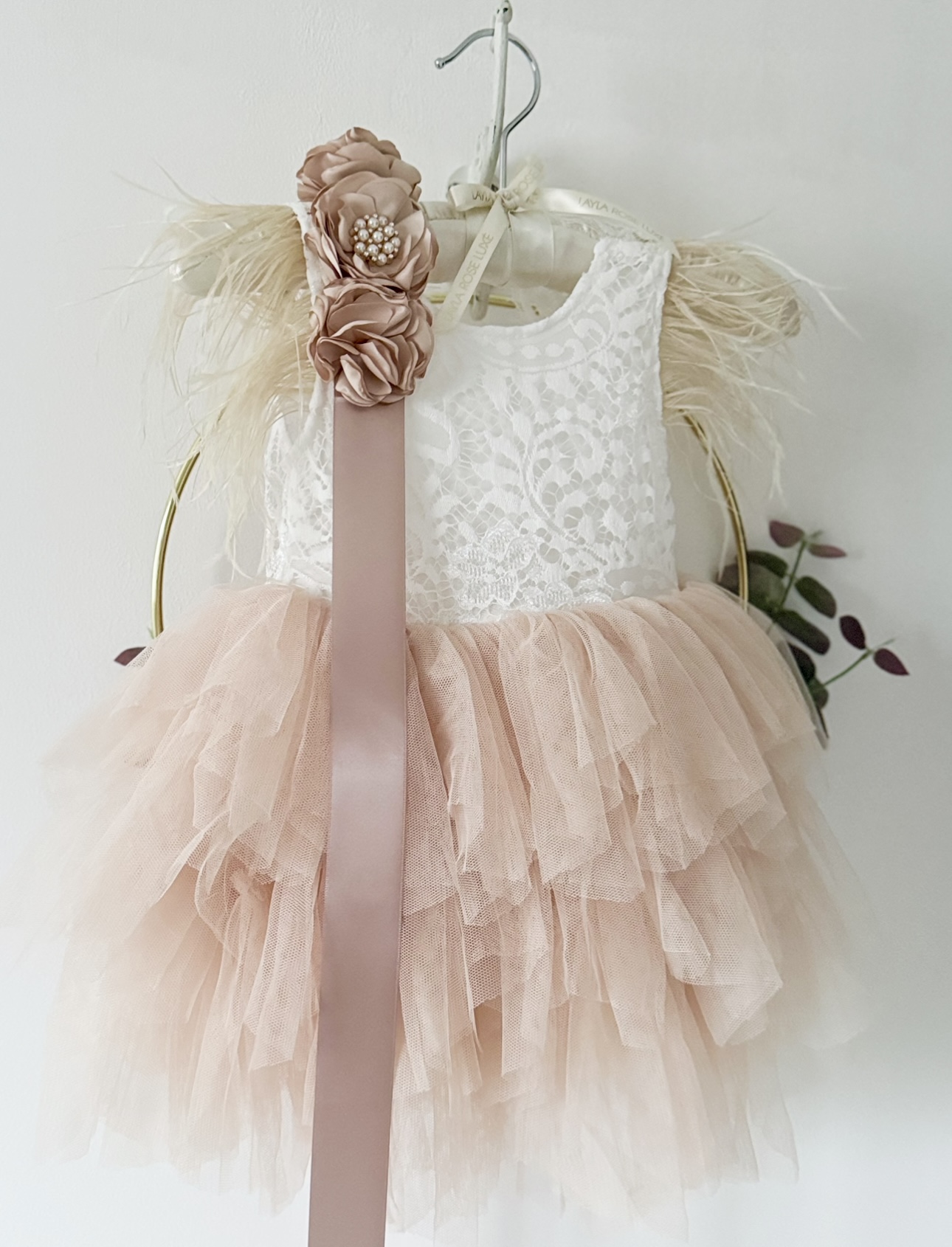 Finished with lots of layers of blush tulle to create the most gorgeous full skirt!