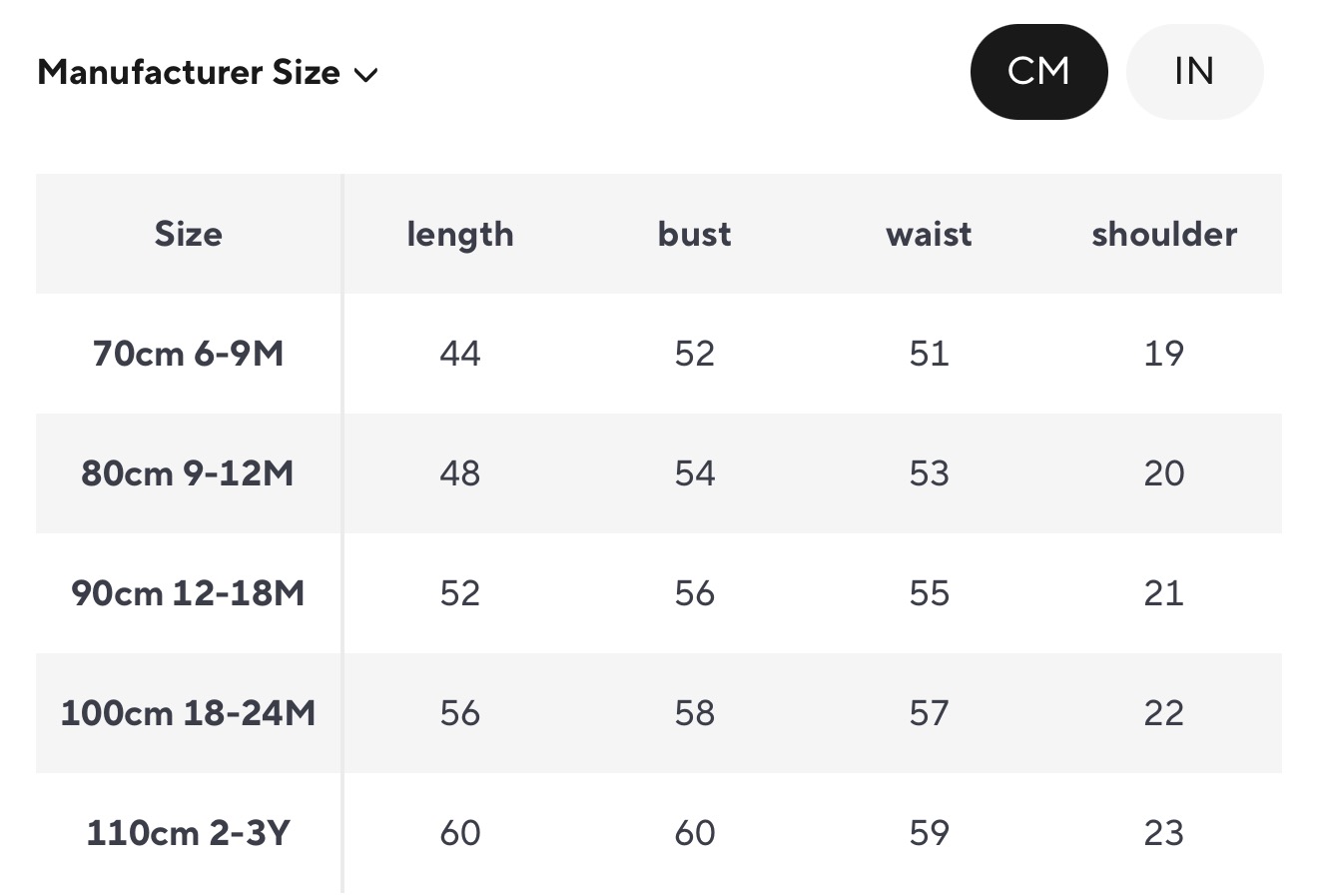 6-9m, 9-12m, 12-18m, 18-24m, 2-3y